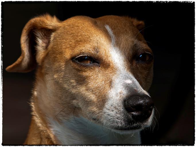 Keywords: dog animal jack russell pet puppies race brown fur face good companion cat white close portrait attention playful cute curious
