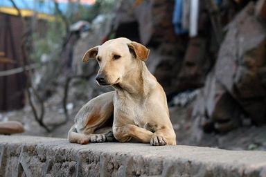 Keywords: dog animals white pets man's best friend vacation devotion street view interest curiosity paws ears