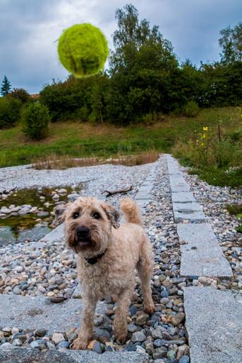 Keywords: dog ball play wet dog wet animal terrier fun awakened joy walk tennis ball go walkies pet