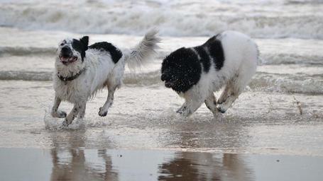 Keywords: dog beach play newfoundland newfie sea dogs animals north sea fun