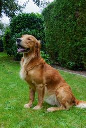 Keywords: dog dog on meadow hundeportrait animal sweet meadow dog portrait attentive dog pet play portrait tongue retriever golden retriever creature