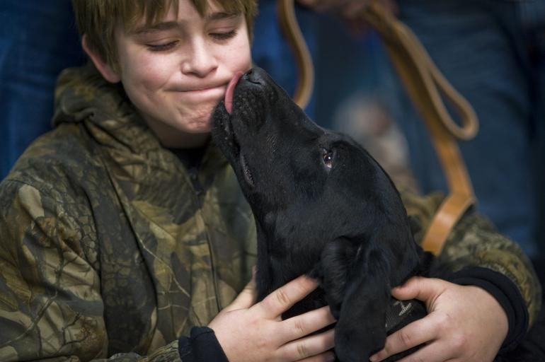 Keywords: dog labrador retriever kiss love cute canine sitting licking face girl hug sweet adorable lab black