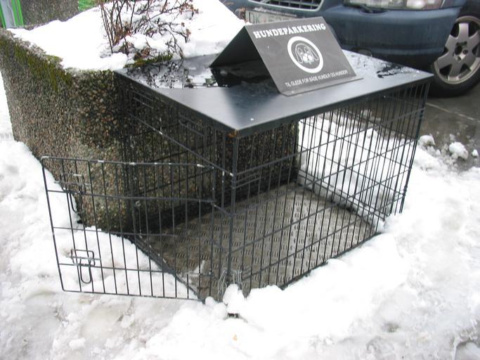 Keywords: Dog parking.jpg en A cage used for dog parking at a parking lot outside of a small mall at Lilleaker Oslo Norway The sign on top of the cage reads Dog parking / To the delight of both dogs and customers no Et bur brukt til hundeparkering på en parkeringsplass utafor et lite butikksenter på Lilleaker i Oslo Norway På skiltet står det Hundeparkering / Til glede for både kunder og hunder Own Punkmorten 2009-03-13 Lilleaker Dog equipment Animal cages Dog parking |