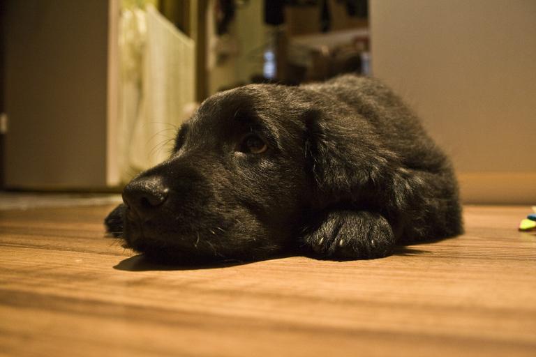 Keywords: dog puppy black flat-coated retriever animal pet cute close-up