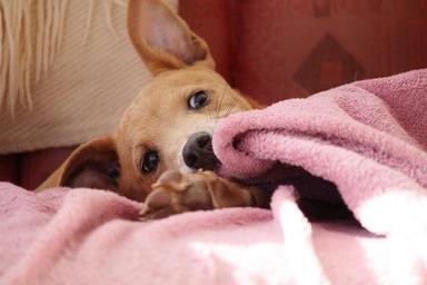 Keywords: dog puppy cute small dog awakened cheeky