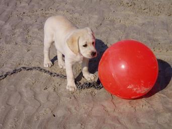 Keywords: dog puppy red beach marker
