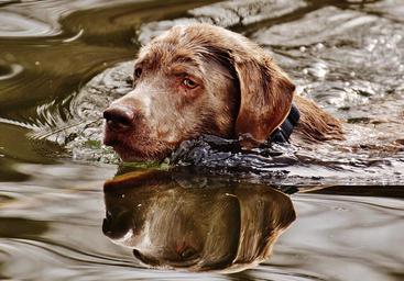 Keywords: dog swim wet water funny cute animal pet quadruped head snout fur