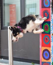 MAKE A MEME View Large Image dog trick border collie city pole jump dog show trick