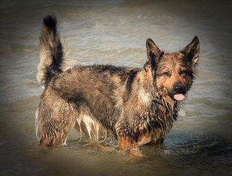 Keywords: dog water sea play beach scene nature wave baltic sea wet
