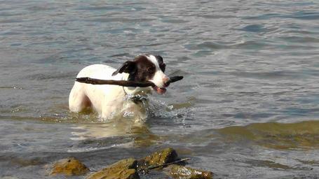 Keywords: dog young dog small dog water pet sweet cute lake stock pick play wet animal world animal swim beach scene nature
