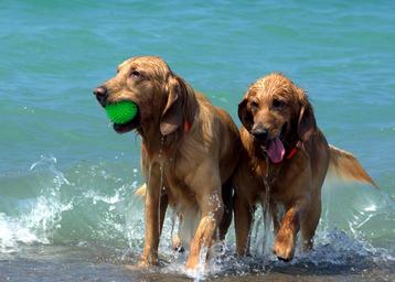 Keywords: dogs beach wet play summer pet canine water sand vacation animal active fur ball outdoor nature puppy activity doggy