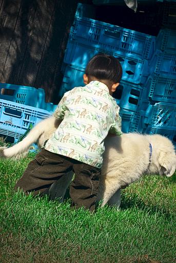Keywords: dogs pets canine adorable person domestic outdoors nature boy happy joy park cute active family playing kid playing