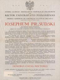 | Keywords: Doktorat Honoris Causa dla Jozefa Pilsudskiego od Uniwersytetu Poznanskiego.jpg  paper accession number 53/296/0/176 place of creation Poznań cc-zero Józef Piłsudski in 1933 State Archive in Poznań Uploaded with VicuñaUploader Adam Mickiewicz University 1933 in Poznań |