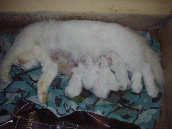 | Keywords: 'Doll-Faced Persian Cat with her litter of 6 kittens'(Tuesday 31-3-2009).JPG en Doll faced Persian cat Matahari with her 6 kittens which are 2 days old Most kittens of a large litter never survive in the wild hence most feral cats average about 2 to 4 kittens/litter Persian and other Pedigreed Cats have smaller litters barring the Siameese which has large litters upto 7 or 8 Mortality rate in large litters is high and on an average 2 or 3 survive to adulthood in Pedigreed Cats bred by breeders and Pet Fanciers These kittens are just 2 days old Own Rudolphfurtado <span class signature-talk >talk</span> 2009-03-31 Cropped version Kittens of persian cat From birth to one week old kittens White persians White kittens Suckling kittens |
