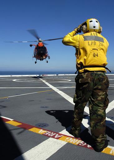 Keywords: Dolphin in Port Angeles DVIDS309408.jpg en Landing signal enlisted Petty Officer 3rd Class Troy Palomino directs an H-65 Dolphin short-range recovery helicopter assigned to Group/Air Station Port Angeles Wash onto the flight deck of the amphibious transport dock ship USS Green Bay Green Bay is assisting the Coast Guard with training exercises in the western Pacific Ocean 2010-08-10 Petty Officer 1st Class Larry S Carlson https //www dvidshub net/image/309408 100810-N-+++++-008 2010-08-14 19 27 USS BLUE RIDGE LCC 19 AT SEA PD-USGov-Military-Navy USS Blue Ridge LCC-19 USS Green Bay LPD-20 Images from DoD uploaded by Fæ |