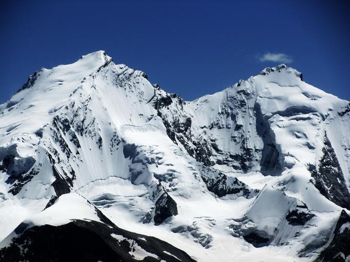 Keywords: Dom01.jpg en Dom and Täschhorn north-west walls Own 4000er 03 08 2008 Dom mountain Täschhorn Snow in Switzerland