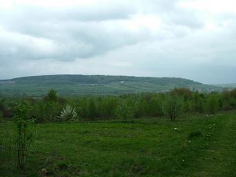 Keywords: Domaniówka (Pasmo Masłowskie).jpg pl widok na Domaniówkę z okolicy Świniej Góry; w pobliżu szczytu widoczny zbiornik wodciągowy Świerczyny u podnóża góry widoczna wieś Swierczyny Own Pikczu 2010-05-02 Świętokrzyskie Mountains