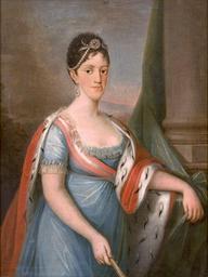 | Keywords: Domingos Sequeira - D. Carlota Joaquina.jpg after title Portrait of Charlotte of Spain Queen of Portugal Retrato de D Carlota Joaquina Rainha de Portugal - 1802 1806 Oil on canvas cm 102 77 Museu de Arte de São Paulo Copy of a lost original by Domingos Sequeira ca 1802 http //www masp art br/masp2010/acervo_detalheobra php id 143 PD-old-100 Other versions Domingos Sequeira Portuguese paintings in the Museu de Arte de São Paulo Portrait paintings in the Museu de Arte de São Paulo Carlota Joaquina of Spain 1802 oil on canvas paintings Portrait 1802 portrait paintings 19th-century oil portraits of standing women at three-quarter length 1802> 19th-century portrait paintings in Brazil 1802> Copies of portrait paintings Ermine clothing in art Females with blue dresses in art History of Brazil 1808-1821 Portuguese Court in Brazil Neoclassical paintings in Brazil Order of Saint Isabel Portrait paintings of queens of Portugal Portuguese paintings in Brazil Sashes of chivalric orders in portrait paintings 1802> |