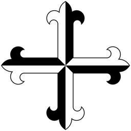 | Keywords: Dominican cross basic.svg Basic version of the cross of the Dominican Order Order of Preachers taken from the coat of arms gyronny of sable and argent a cross flory counterchanged own - Self-made image converted from a version of the following vector PostScript source code <pre> 300 300 translate 1 58 dup scale -300 -300 translate/A 277 8895 420 moveto 265 79687 420 12 09263 0 180 arc 267 78264 437 10157 22 15096 230 53799 50 53799 arcn 318 13895 454 20313 36 27790 180 120 arcn 281 86105 454 20313 36 27790 60 0 arcn 332 21736 437 10157 22 15096 -230 53799 -50 53799 arcn 334 20313 420 12 09263 0 -180 arc 322 1105 420 lineto 322 1105 180 lineto 334 20313 180 12 09263 180 0 arc 332 21736 162 89843 22 15096 50 53799 230 53799 arcn 281 86105 145 79687 36 27790 0 300 arcn 318 13895 145 79687 36 27790 -120 -180 arcn 267 78264 162 89843 22 15096 -50 53799 -230 53799 arcn 265 79687 180 12 09263 180 0 arc 277 8895 180 lineto 277 8895 420 lineto closepath fill def A 0 600 translate -90 rotate A showpage EOF</pre> 2011 AnonMoos For other versions see File Dominican Cross svg and File Crux-Dominicana svg <gallery>Shield of Domincan Order svg Complete coat of arms</gallery> Dominican Cross Images with PostScript source code SVG coat of arms elements - crosses |