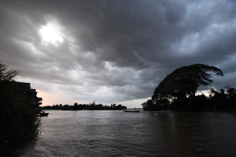 MAKE A MEME View Large Image Don det sky laos storm mekong tree.jpg en Photo of the Mekong evening twilight river water with a boat tree nature landscape grey dark clouds baba guesthouse fr photo du mekong soir et crepuscule lumiere trou dans le ciel bateau sur le ...