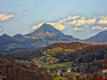 Keywords: donacka mountain landmark landscape scenic forest trees autumn rogaska slatina slovenia village valley mountains nature outside countryside hdr