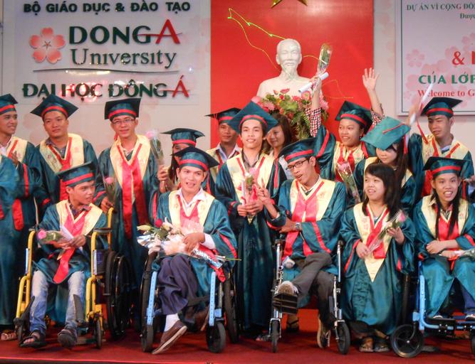 | Keywords: Dong A University IT Program for Students with Disabilities.jpg en Dong A IT Program graduates celebrate in Danang Photo CRS First Group of Students with Disabilities Graduates from IT Program in Danang in Support to Vulnerable Populations Press Review DANANG September 5 2013 - After nine months of intensive classroom training and on-the-job training the first group of 19 students with disabilities graduated from IT training program ITTP at Dong A University in Danang Students attending ITTP at Dong A University received full scholarships and living support funded by the U S Agency for International Development USAID through Catholic Relief Services CRS During their training the students learned skills in graphic design and website development Two companies Minh Phuoc and HRI Vietnam plan to recruit five students from the graduating class Dong A University and CRS will continue to link students to different employers to support students finding jobs Since 2007 https //en wikipedia org/wiki/United_States_Agency_for_International_Development USAID and CRS have collaborated with the Hanoi College of IT Van Lang University in Ho Chi Minh City and Dong A University in Danang to provide advanced IT training for young people with disabilities from all over Vietnam This program has trained more than 900 students with disabilities and more than 80 percent of the program's graduates have found jobs after training Dong A University plans to train at least 250 students with disabilities in IT skills by 2015 http //www walnutcreekwebdesigner com Walnut Creek Web Designer 2013-09-05 09 27 30 https //www flickr com/photos/usaid_vietnam/9708277855/ USAID Vietnam other versions PD-USGov United States Agency for International Development |