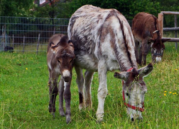Keywords: donkey animal beast of burden mother child mare foal meadow pasture animals mammal animal world head eyes ears