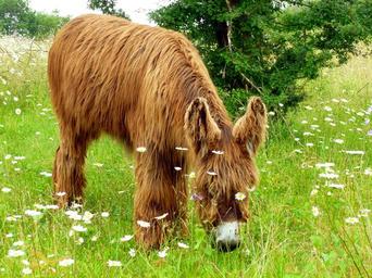 Keywords: donkey animal long haired rural nature animal world meadow flower meadow green red brown