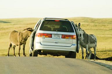 Keywords: donkeys car road begging feed feed me intruder animal travel tourism tour explore grass summer burro landscape green wildlife friendly visit spring pasture wild vehicle automobile head park