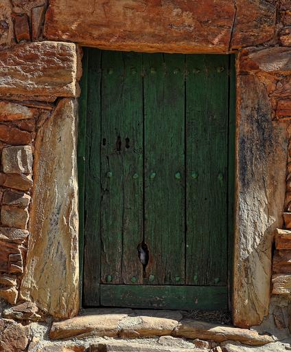 Keywords: door bare wood old entrance exit archway building architecture doorway wooden closed stones structure