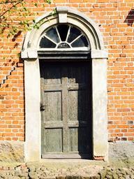 Keywords: door brick building semicircular window stone wooden door shabby