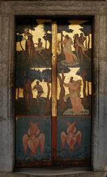 | Keywords: Door of the Chapel of Panaghia (the Virgin) - Google Art Project.jpg  commons date commons medium commons dimensions commons institution commons location commons references commons object_history commons exhibition_history commons credit_line commons inscriptions commons notes commons accession_number commons source commons permission commons other_versions commons zoom core title Door of the Chapel of Panaghia the Virgin core date dateCreated 1600/1699 core type Paintings core rights Monastery of Saint John the Theologian Patmos c-006e355e customtext  εριγραφή Η  όρτα  ου οδηγεί α ό το καθολικό στο  αρεκκλήσι της Παναγίας είναι ξύλινη και δίφυλλη με ζωγραφική διακόσμηση στην εσωτερική της  λευρά Το κάθε φύλλο της θύρας είναι χωρισμένο σε τρεις οριζόντιες ζώνες Στις δύο ανώτερες α εικονίζεται το Προ ατορικό Αμάρτημα ενώ στις κατώτερες α ό ένα εξα τέρυγο σε α αλό κόκκινο χρώμα  άνω σε γαλάζιο βάθος Οι σκηνές του Προ ατορικού Αμαρτήματος α οδίδονται με ιδιαίτερα ζωγραφικό τρό ο Το  αραδείσιο το ίο στις τέσσερις ζώνες της ανα αράστασης α οτελείται α ό μία ζώνη εδάφους με  ράσινο γρασίδι γεμάτο άνθη και ψηλά κατάφορτα με καρ ούς δέντρα Τα σώματα των  ρωτο λάστων α οδίδονται  λαστικά με μαύρες γραμμές και οι κινήσεις τους δίνουν μία α αλή αρμονική αίσθηση Η αρμονία των φωτεινών χρωμάτων σε α αλούς τόνους καθώς και η ζωγραφική α όδοση και οι θεατρικές  όζες των μορφών οδηγούν στην α όδοσή του έργου στην Κρητική σχολή του 17ου αιώνα c-006e355e customtext στοιχεία_έργου Πόρτα του  αρεκκλησίου της Παναγίας 17ος αιώνας c-006e355e creator painter Unknown google display_date 1600/1699 google is_gigapixel FALSE google is_secured TRUE google street_view_asset/id KgE9q38ji4B5JA google street_view_level/id 4457151413987463554 google street_view_location 37 309257507324219 26 548213958740234 0 019999999552965164 wfLyqJDvCq1ppzXteYH8sw google partner/id 00000000006e355e google is_artproject TRUE google picasa_token oynGHVh7VGqzzjyi7X8gQ9H3aqY special url_id WQErAPCbalHNFw google partner/name Monastery of St John the Theologian Patmos Greece special partner/name_no_lang Monastery of St John the Theologian Patmos Greece PD-old-100-1923 Google Art Project works by unknown artist Monastery of Saint John the Theologian |