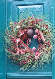 Keywords: door decoration wreath christmas branches balls wooden door decorated