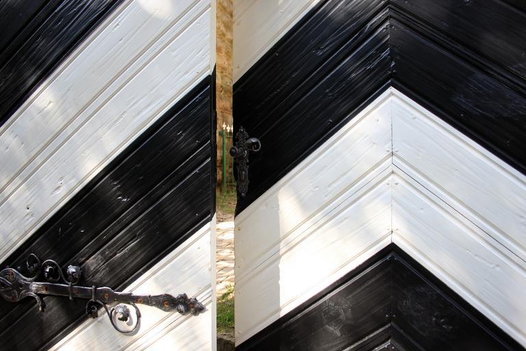 Keywords: door goal black white open by looking lock bolt close black and white antique old intake invitation caution