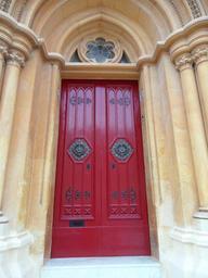 Keywords: door input portal house entrance red goal wood decorated gate