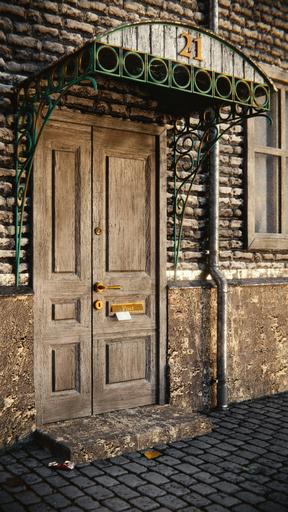 Keywords: door wallet downpipe cobblestones masonry wooden door 3d post letters front door old door house entrance