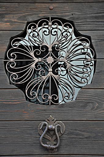 Keywords: door wood aldaba architecture input house design structure caller grating iron metal metallic geometry forging forged access detail wrought iron