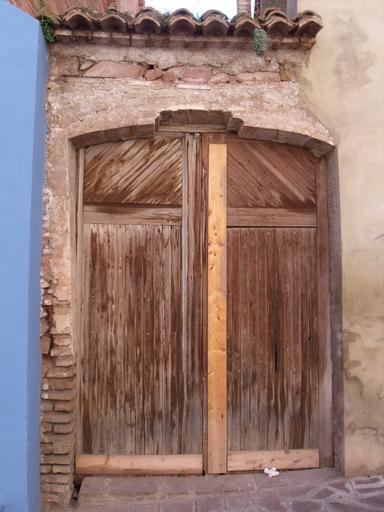 Keywords: door wood old house architecture restored rustic rural stone facade brick old door