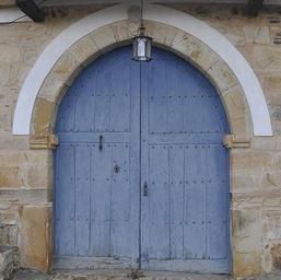Keywords: doors painted wood blue weathered rustic old entrance exit archway building architecture doorway wooden closed stones structure entry opening