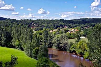 Keywords: dordogne france landscape scenic river water vezere forest trees woods nature outside sky clouds country countryside summer spring