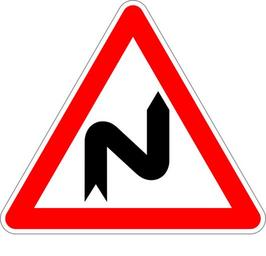 Keywords: double curve first to right traffic sign sign road sign roadsign warning sign street sign traffic road sign warning red double curve right proceed with extra caution caution