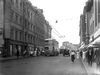 | Keywords: Double-Decker Trolleybus in Moscow.jpg en Double-decker trolleybus YaTB-3 in Moscow Unknown photografer End of 1930s years ru Двухэтажный т оллейбус ЯТБ-3 Конец 1930-х годов Тве ская улица вид в сто ону Пушкинской бывшей Ст астной площади сп ава Елисеевский магазин Source Gallery - http //moskva kotoroy net/photos/4 html <br />Direct link to photowork http //moskva kotoroy net/userdata/1170255013_1 jpg PD-Old-70 YaTB-3 Historical images of Tverskaya Street Tverskaya 14 | ||||