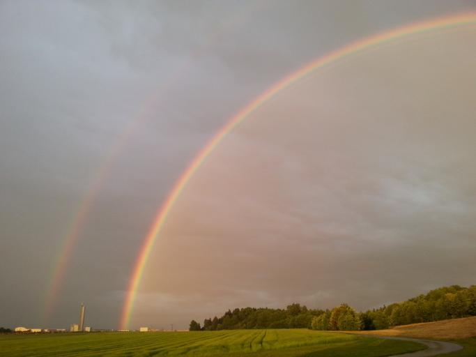 Keywords: double rainbow rainbow natuschauspiel secondary rainbow rainbow colors natural phenomenon spectacular spectrum sunshine refraction double colorful weather climate sunset bent dark thunderstorm blue green yellow red rain weather phenomenon atmosphere meteorology