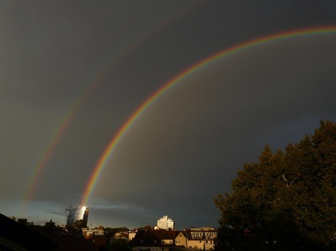 | Keywords: double rainbow rainbow secondary rainbow dark gloomy mood mirroring refraction double two phenomenon rain sunshine sky nature spectrum colorful natural phenomenon rainbow colors ray natural spectacle of course spectacular clouds half circle city ulm lichtreflex reflex sun skyscraper shine maritime new ulm |