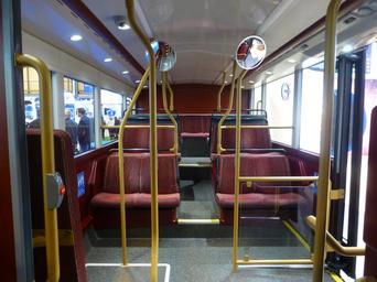 Keywords: srm volvo opportunity charging opportunitycharging bus new routemaster newroutemaster wrightbus b5lhc indoor Looking towards the back of the lower deck of a Wrightbus opportunity charging (Volvo system) SRM bus. The SRM buses are part of the New Bus For London / New Routemaster family of buses but are only 10.6m long and feature a more traditional (for London) "twin door + single staircase" format. Another difference is that whilst the body style is NBFL / NRM the opportunity charging variant SRM uses the Volvo B5LHC chassis and a specially tweaked version of the Euro6 parallel style diesel hybrid propulsion that also allows travel in virtual electric mode. Looking towards the back of the lower deck of a Wrightbus opportunity charging (Volvo system) SRM bus. The SRM buses are part of the New Bus For London / New Routemaster family of buses but are only 10.6m long and feature a more traditional (for London) "twin door + single staircase" format. Another difference is that whilst the body style is NBFL / NRM the opportunity charging variant SRM uses the Volvo B5LHC chassis and a specially tweaked version of the Euro6 parallel style diesel hybrid propulsion that also allows travel in virtual electric mode.