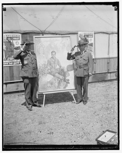 Keywords: Dr. James E. West, Chief Scout Executive of the Boy Scouts and Rep. Sol Bloom of New York 22743v.jpg Title Official Boy Scout poster Dr James E West Chief Scout Executive of the Boy Scouts left and Rep Sol Bloom of New York with the official poster This poster was painted and donated to the Boy Scout Jamboree by Howard Chandler Christy It the poster will be distributed all over the world for the coming Boy Scout Jamboree which will be held in Washington from June 30th to July 9th with 30 000 Boy Scouts in attendance Rep Bloom has been one of the most active leaders in promoting this Boy Scout Jamboree 5/21/1937 Creator s Harris Ewing photographer 1937 May 21 Medium 1 negative glass 4 x 5 in or smaller accession number Reproduction Number LC-DIG-hec-22743 digital file from original negative Rights Advisory No known restrictions on publication Call Number LC-H22- D-1530 P P institution Library of Congress Prints and Photographs Division Washington D C 20540 USA http //hdl loc gov/loc pnp/pp print Title from unverified data received with the Harris Ewing Collection on the negative or negative sleeve Gift; Harris Ewing Inc 1955 General information about the Harris Ewing Collection is available at http //hdl loc gov/loc pnp/pp hec Temp note Batch four LOC-image hec 47343 http //www loc gov/pictures/search/ q Boy 20Scout 20Jamboree Harris Eweing PD-Harris-Ewing 1937 National Scout Jamboree 1937 in Washington D C Uploaded with VicuñaUploader