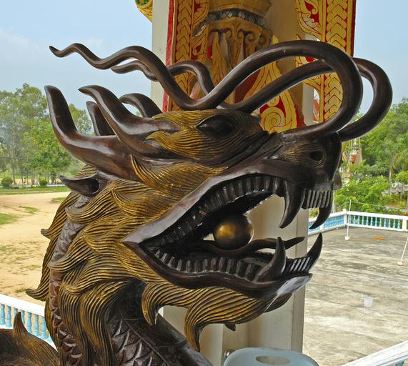 Keywords: dragon's head dragons wood carving thailand