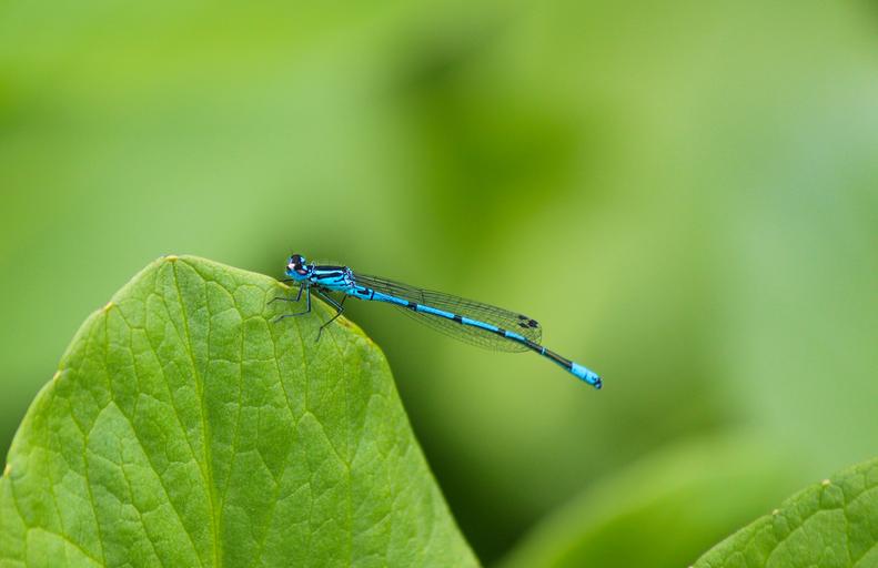 Keywords: dragonfly blue close insect waters demoiselle wing pond leaf blue bar bubble