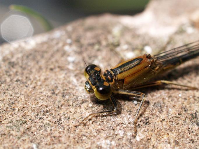 Keywords: dragonfly insect nature animal stone brown eyes close macro bank fauna animal world