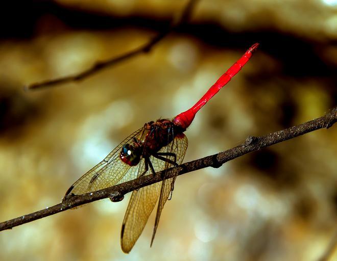 Keywords: dragonfly insect red black wings lacy resting twig queensland australia